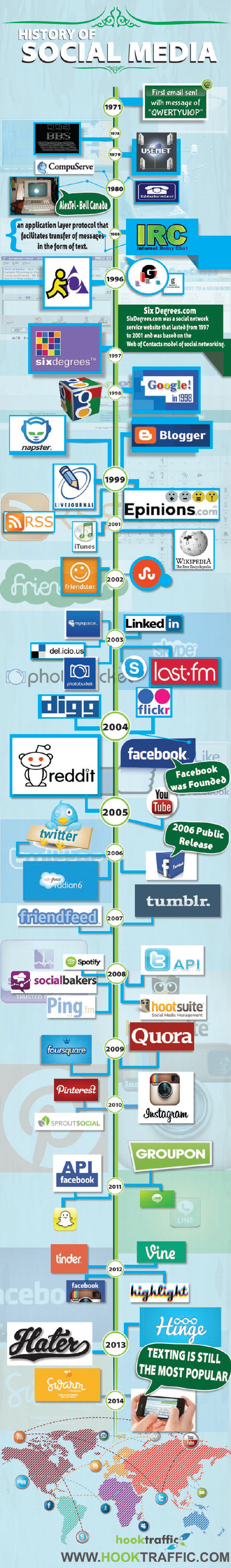 تاریخچه شبکه های اجتماعی را از 1971 تا 2013 در اینفوگراف زیر ببینید.